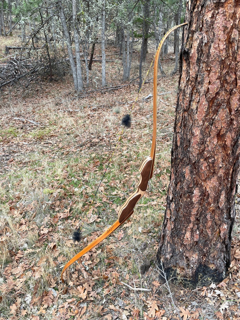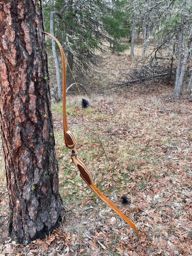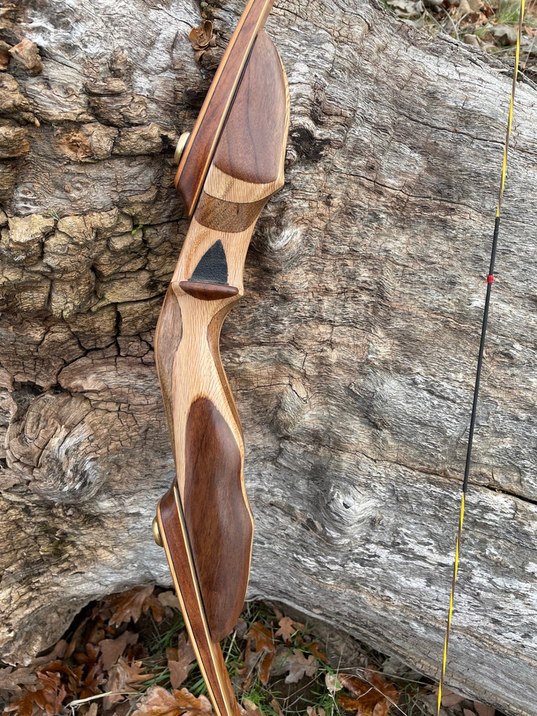 One of the new Raptor takedowns, the F22, in stock and ready to go. This one is Pacific yew limbs with Stabil core for extra stability, Black Walnut wedges to match the riser of Black Walnut and Pin Oak with black Phenolic tip overlays. Fast Flight/ Dynema compatible . Right handed, 64" and 50 #@28". Performance that invites comparison. This is one of the more modest models without the recessed limb pockets, same limbs but a more modest price.