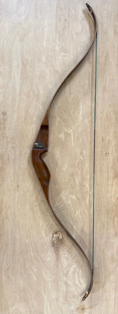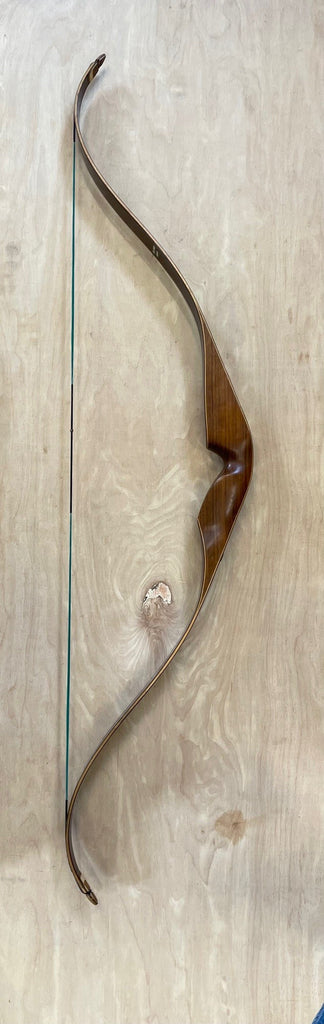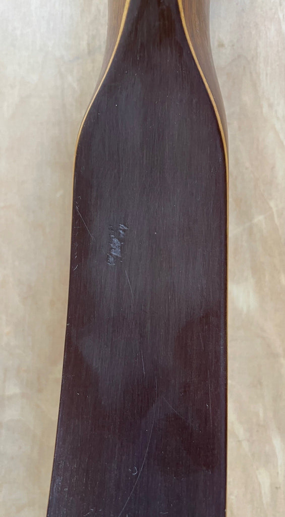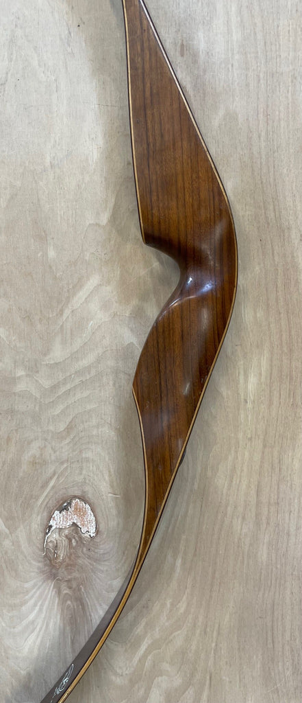 A RH Wing Redwing Hunter that is 52" long and RH48#. The bow is market "Blemish" on the riser but the only thing I can find is the small surface gouge in the glass of the lower belly side above the fadeout. The bow is in great used condition. Brown glass back and belly with the factory inserts for a bow quiver