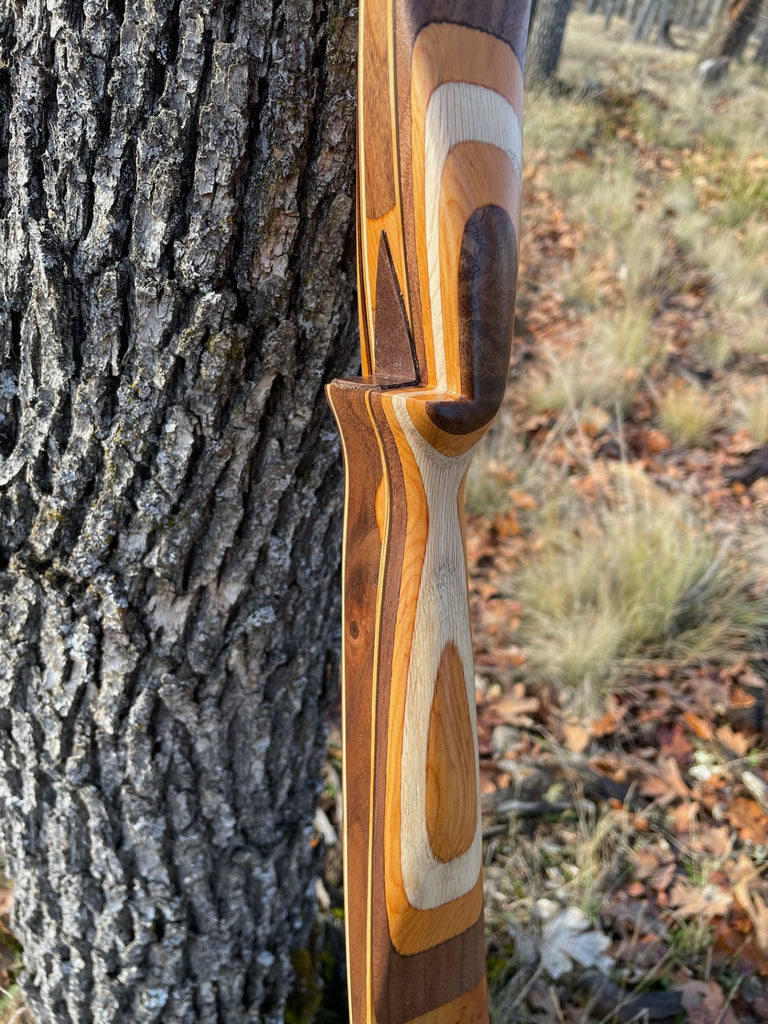 A design built on many years of bow building experience, both composite bow and Selfbow construction and engineering. The Raptor Signature Longbow is designed by taking the best attributes of a recurve and the best of the Longbow and combining the two for a quick , smooth and accurate bow that still is a longbow by design. The riser is slightly forward of the center of the side profile, this gives you a bow that is less likely to torque in your had and helping with a solid anchor. A center cut riser as well giving you less critical arrow paradox. The wider limb design helps spread the tension and compression dynamics of the limbs over the whole working area. Add this with beautiful wood and you have a fantastic bow. Check out the bows in stock page or contact us for more information.